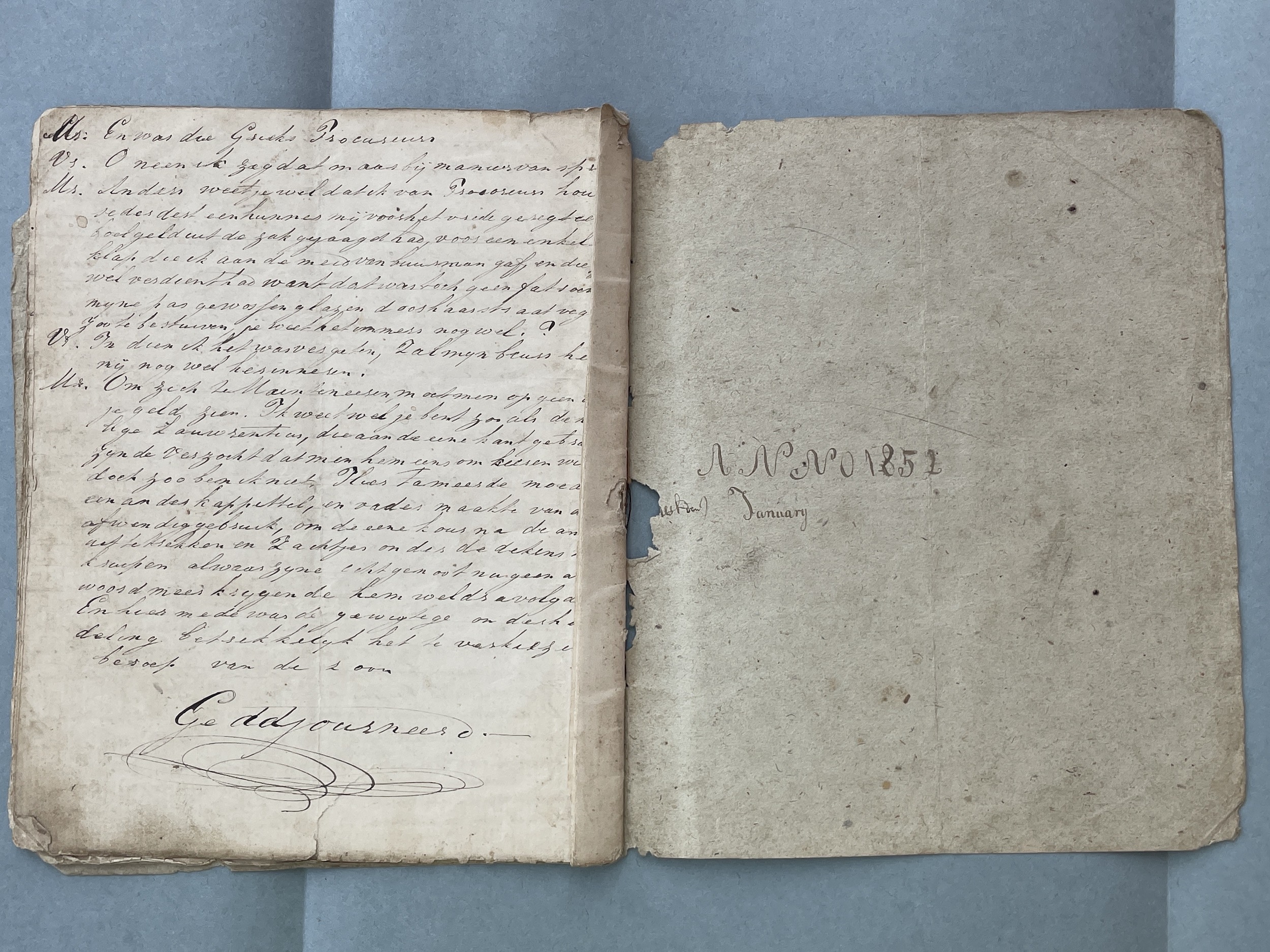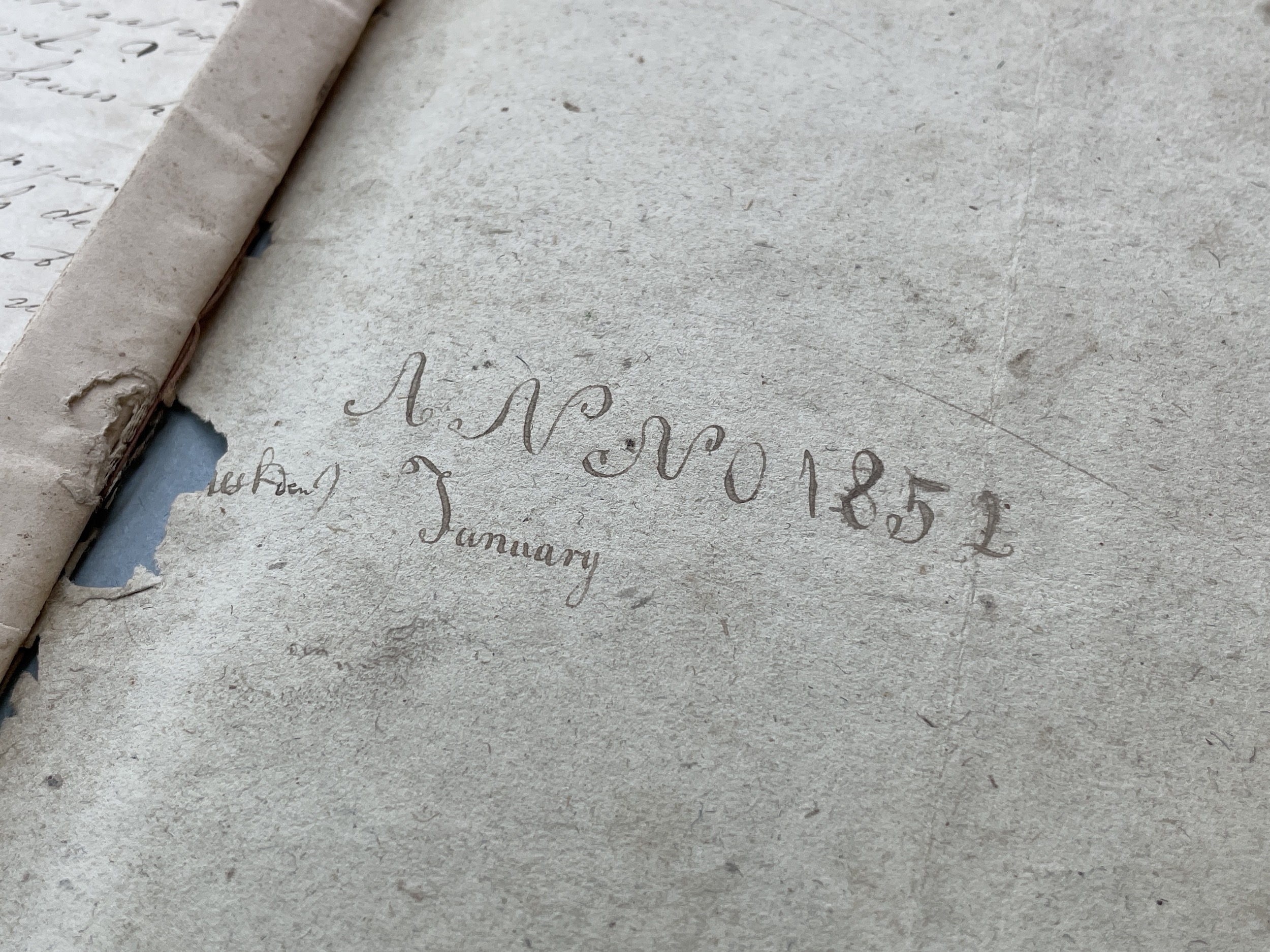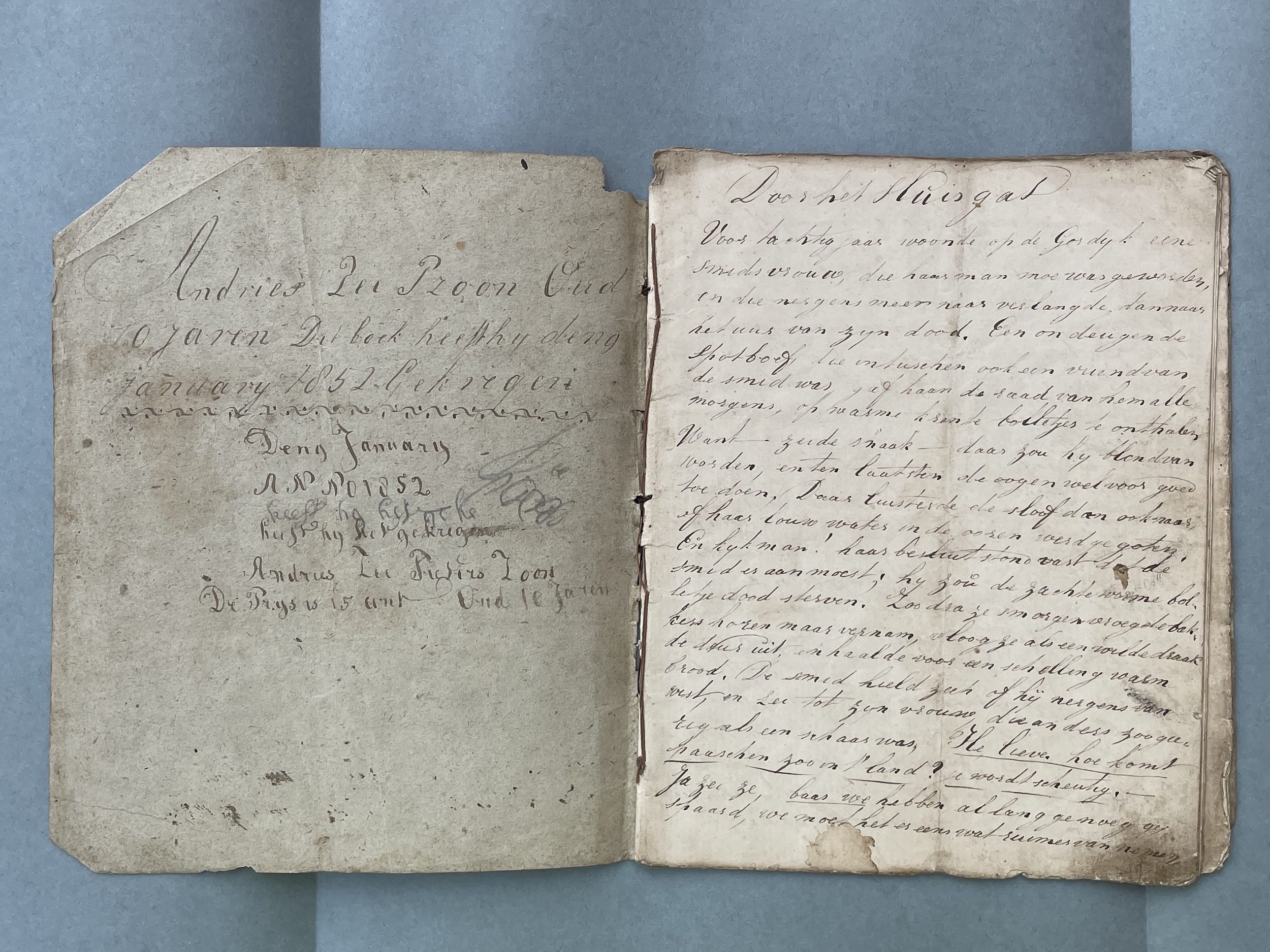 Andries Zee’s exercise book, apparently for handwriting practice, from 1852 – “den 9 January Anno 1852“. The original is preserved in the Westfries Archief.